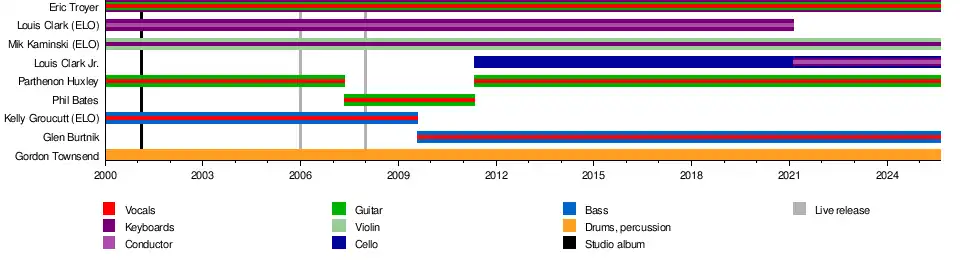 - Eric Troyer – keyboards, vocals, guitar (2000–present) (from ELO Part II)