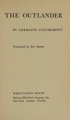 The Outlander is a French-Canadian novel written by Germaine Guèvremont in 1945 and translated by Eric Sutton in 1950. The Outlander is a combination of two of Guèvremont's books, Le Survenant and its sequel, Marie-Didace. The Outlander was published simultaneously in London, New York and Toronto. The English edition was entitled The Monk's Reach and the American edition The Outlander.