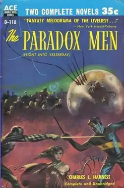 The Paradox Men is a science fiction novel by American writer Charles L. Harness, his first novel. Initially published as a novella, "Flight into Yesterday", in the May 1949 issue of Startling Stories, it was republished as The Paradox Men in 1953.[1][2] The "science-fiction classic"[3] is both "a tale dominated by space-opera extravagances" and "a severely articulate narrative analysis of the implications of Arnold J. Toynbee's A Study of History."[1] Boucher and McComas described it as "fine swashbuckling adventure ... so infinitely intricate that you may never quite understand what it's about."[4] P. Schuyler Miller described it as "action-entertainment, fast-paced enough that you don't stop to bother with inconsistencies or improbabilities."[5]