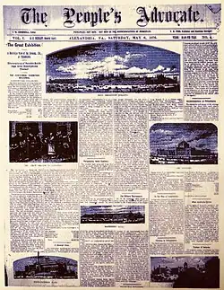 The People's Advocate was among the first weekly African American owned and operated newspapers in the state of Virginia. It was the first African American newspaper in the city of Alexandria, Virginia. The People's Advocate moved its operation to Washington D.C. in 1878 and was published until 1890.[1][2][3]