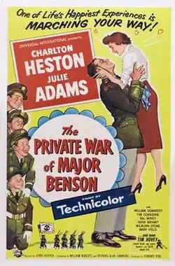 The Private War of Major Benson is 1955 American military comedy film starring Charlton Heston, Julie Adams, Sal Mineo and Tim Hovey, about a tough-talking U.S. Army officer who must shape up the JROTC program at Sheridan Academy, a Catholic boys' military academy, or be forced out of the Army.
