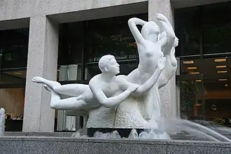 The Quest, sometimes referred to as Saturday Night at the Y or Three Groins in a Fountain,[1][2] is an outdoor marble sculpture and fountain designed by Count Alexander von Svoboda, located in Portland, Oregon in the United States. The sculpture, carved in Italy from a single 200-ton block of white Pentelic marble quarried in Greece, was commissioned by Georgia-Pacific in 1967 and installed in front of the Standard Insurance Center in 1970. It depicts five nude figures, including three females, one male and one child. According to the artist, the subjects represent man's eternal search for brotherhood and enlightenment.