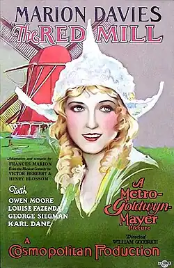 The Red Mill is a 1927 American silent comedy film directed by Roscoe Arbuckle (as William Goodrich) that starred Marion Davies and was produced by King Vidor.[2] Although Arbuckle was acquitted in the third trial for the death of Virginia Rappe, he could not obtain work in Hollywood under his own name, so he adopted the pseudonym William Goodrich for directing the comedy shorts he made under his contract with Educational Film Exchanges.[3]