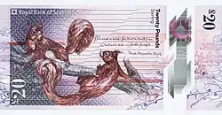 The Royal Bank of Scotland £20 note is a sterling banknote. It is the third largest denomination of banknote issued by The Royal Bank of Scotland. The current polymer note, first issued in 2020, bears the image of Catherine Cranston on the obverse and a vignette depicting a pair of Red Squirrels on the reverse.