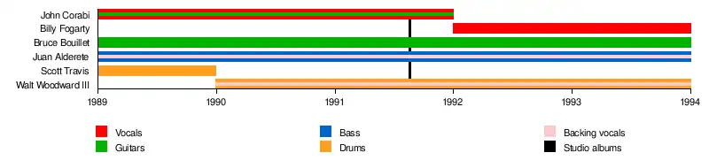John Corabi joined Mötley Crüe after Vince Neil's departure and recorded the self-titled 1994 album with the band. However, poor sales and inadequate tour support resulted in Vince Neil's return to the band. Corabi has played in many bands since, including Ratt, Union and E.S.P., a covers band with other big names Eric Singer, Bruce Kulick, Chuck Garrick and Karl Cochran (often performing many songs from the various members well known bands). Since February 2015, Corabi has joined The Dead Daisies with which he has recorded two studio albums (Revolución in 2015 and Make Some Noise in 2016).