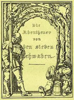 "The Seven Swabians" (German: Die Sieben Schwaben) is a German fairy tale, collected by The Brothers Grimm in the second volume edition of their Kinder- und Hausmärchen (1857) under the number KHM119.[1] The term Swabians refers to people from the German region Swabia, though in Switzerland it refers to Germans in general.