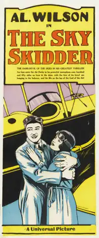 Al Wilson was not only the star of The Sky Skidder but also flew as a stunt pilot in the film. After becoming a flying instructor and a short period as manager of the Mercury Aviation Company, founded by one of his students, Cecil B. DeMille, Wilson became more and more skilled in performing stunts, including wing walking. He left the company to become a professional stunt pilot, specializing in Hollywood aviation films.[6]