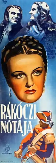 The Song of Rákóczi (Hungarian: Rákóczi nótája) is a 1943 Hungarian historical adventure film directed by József Daróczy and starring Klári Tolnay, János Sárdy and Károly Kovács.[1] It was shot at the Hunnia Studios in Budapest. The film's sets were designed by the art director László Dudás.