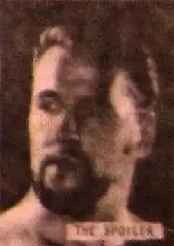 The Spoiler wrestled 75 matches for the World Wide Wrestling Federation in 1972 before leaving for other promotions. He returned to the WWF and had his first match back for a television taping in Poughkeepsie, New York, on 30 July 1984, defeating Jeff Lang, and wrestled for a few years until his last match in the WWF on 21 January 1986 in Los Angeles, California, defeating Billy Anderson. The Spoiler, along with Jake "The Snake" Roberts and 400-pound King Kong Bundy, joined forces with a newly emerging tag team, The Road Warriors, to form the original Legion of Doom.[3] The Spoiler once headlined against WWF Champion Pedro Morales in Madison Square Garden, wrestling maskless because, at that time, the arena had a rule barring masked wrestlers from performing.[5] The Spoiler appeared in a historic match against Mil Mascaras, the Mexican legend, marking the first time a wrestler (Mascaras) ever wore a mask into a ring in New York State. The Spoiler's matches against Chief Jay Strongbow and Sonny King were long-lasting feuds that enjoyed successful runs across the WWF circuit. His "Iron Claw" was the first maneuver to be "censored" on television by the WWF in a promotional move.