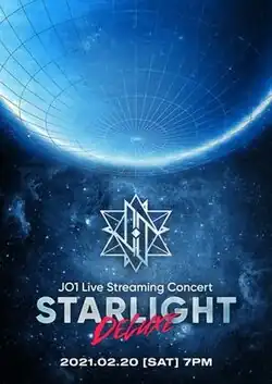 Starlight (stylized as JO1 1st Live Streaming Concert "Starlight") was the first online concert by JO1, held on December 19, 2020, via Pia Live Stream.[6][40] The concert lasted two hours and twenty minutes and included talk and game segments.[41] It attracted an estimated 120,000 viewers from 30 countries and regions besides Japan, including the United States, Australia, China, South Korea, and Indonesia.[42][43] The concert was broadcast on TBS' cable television channel TBS Channel 1 on January 31, 2021, featuring an exclusive behind-the-scenes footage and an interview with the members.[44]