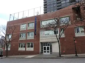 In 1963, The Town School moved into the former East Side Settlement House at 540 East 76th Street, the location where the school remains today, and construction soon began on a new building to supplement the earlier structure. In 1978, Town acquired an adjoining two-story factory building and continued to increase the school's space through the mid-1980s.[2][3] Building renovations have included a new library and technology center (1999), auditorium renovation (2008), solar panels installation (2009), the first wind turbine installed at a New York City school (2012), and Innovation Lab (2012).[4]