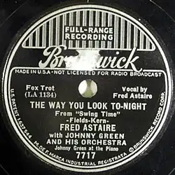 In the movie, Astaire sang "The Way You Look To-night" to Ginger Rogers while she was washing her hair in an adjacent room.[5] Astaire's recording was a top seller in 1936. Other versions that year were by Guy Lombardo and Teddy Wilson with Billie Holiday.[4]