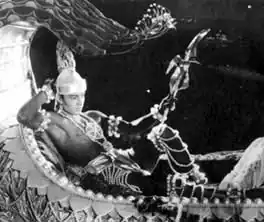 Amos does so, but Amhad Beg and his men find and kidnap him. Just as they are about to kill him, Amos is rescued by the mystic Narada (Josef Swickard), who also can see into the future, and his followers. Narada convinces him to forgo his own happiness and return to India to overthrow the tyrant. When Amos is welcomed by his people and the army revolts, Ali Khan commits suicide. The new Maharajah of Dharmagar takes comfort in his latest vision, which shows his wedding to Molly.