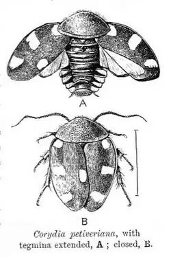 - ^ Ananthasubramanian, K.S. & T.N. Ananthakrishnan (1959). "The structure of the ootheca and egg laying habits of Corydia petiveriana L". Indian Journal of Entomology. 21: 59–64.