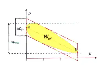 The difference between an idealized cycle and actual performance may be significant.[2] For example, the following images illustrate the differences in work output predicted by an ideal Stirling cycle and the actual performance of a Stirling engine: