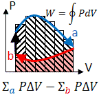 For example :--the pressure-volume mechanical work output from the ideal Stirling cycle (net work out), consisting of 4 thermodynamic processes, is: