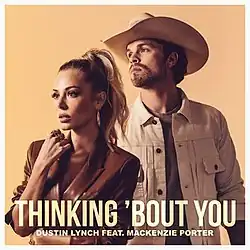 "Thinking 'Bout You" is a song written by American country music singer Dustin Lynch with Andy Albert, Hunter Phelps, and Will Weatherly. It was first recorded by Lynch as a duet with fellow American country singer Lauren Alaina for Lynch's fourth studio album, Tullahoma (2020). Due to promotional conflicts, the song was re-recorded in 2021 featuring Canadian country singer MacKenzie Porter for release as the album's fifth single. The single version with Porter debuted to American country radio on May 3, 2021.[2]