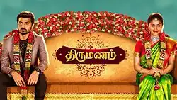 Thirumanam (transl. "The Wedding") is an Indian Tamil language drama airing on Colors Tamil. It premiered on 8 October 2018 to 16 October 2020 [1][2] The show stars Shreya Anchan and Sidhu. This series is a remake of Agnisakshi, an Indian Kannada television drama that premiered on Colors Kannada on 2 December 2013.