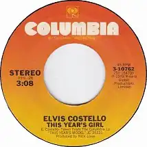 "This Year's Girl" was released as the second track on Costello's 1978 sophomore album, This Year's Model. It was not released as a single in Costello's native UK, but a single of the song with B-side "Big Tears" was issued in the US.[10] It did not chart there. The song has since appeared on Costello compilations, such as Girls Girls Girls. An alternate version of the song has been released on later editions of This Year's Model.