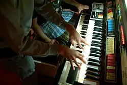 • Repeat Percussion - Playable from either manual, Repeat Percussion emulated the sound of percussive instruments such as a marimba or banjo. The repeat rate was easily adjusted via a thumbwheel on most models and rotary control on smaller models such as the AR1