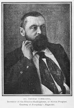 Thomas Tommasina (1855 – 29 January 1935)[1] was an artist turned physicist who worked on atmospheric ionization and gravitational theories mainly after moving to Switzerland. An experimenter as well as a theoretician, he invented a radio-receiver-like device while studying ionospheric disturbances in the upper atmosphere and used it in long-range weather prediction.