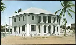Thursday Island is one of the many tropical islands in the region known as Torres Strait, lying between the northern tip of Cape York and the New Guinea coast. The Thursday Island Customs House occupies a prominent site in the township of Thursday Island, located on the southern coastline of the island. The Customs House is a two stored masonry building, located fronting Victoria Parade, and bordered by Hastings and Jetty streets. The Government Jetty and Engineers Jetty lie nearby. The building remains a landmark on the island, being one of the few non timber buildings constructed there.[1]