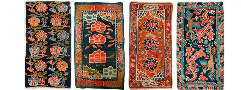The interest of western collectors of Tibetan rugs was particularly piqued by tiger rugs, in part because of their associations with Tantric meditation; many Tibetan tiger rugs were gifts for lamas in the monasteries.[5][6]