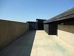 The saltwater pool has an irregular, rectangular plan, constructed over the outcrops and structured along the linear wall that delimits the beach. Access to the structure is conditioned by a route framed by raw cement, along which there are orthogonal and linear views that induce the view to look at focal points of the landscape. Below the walls are various support structures.[6]