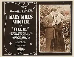 Tillie is a 1922 American silent drama film directed by Frank Urson and starring Mary Miles Minter. The scenario was written by Alice Eyton, based on the novel Tillie, the Mennonite Maid by Helen Reimensnyder Martin.[1] Tillie reunited Minter with Allan Forrest, her most frequent leading man from her time at Mutual Film and the American Film Company, for the first time since their 1919 picture Yvonne from Paris. As with many of Minter's features, Tillie is thought to be a lost film.[2]