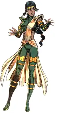 Rina Patel is an Indian mutant, born with special superhuman strength, durability, time manipulating powers, time traveling abilities and superspeed. Initially her only known special ability was to completely swap her current consciousness with her consciousness from any other point in her life, past or future. Later, she also discovered her time manipulating, superhuman strength & durability, superspeed and time travel abilities.