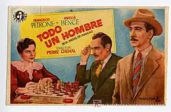 Todo un hombre (What a Man) is a 1943 Argentine romantic drama film of the Golden Age of Argentine cinema, directed by Pierre Chenal on his Latin film debut, and starring Francisco Petrone and Amelia Bence.[1] Critically acclaimed, the film was compared by critics in Argentina to Jean Vigo's L'Atalante.[2] At the 1944 Argentine Film Critics Association Awards, Petrone won the Silver Condor Award for Best Actor for his performance in the film.[3]