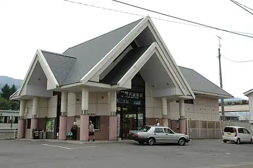 1. ^ a b c d Shinano Mainichi Shimbun (2011). Nagano Prefecture All Railway Stations, revised edition (長野県鉄道全駅 増補改訂版) (in Japanese). Shinano Mainichi Shinbun Publishing. p. 25. ISBN 9784784071647.