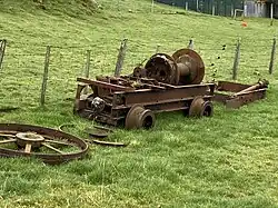 There were several sawmills, milling trees such as rimu.[30] Bauchop's mill burnt down in 1912[31] and narrowly escaped another fire in 1917.[32] There were 3 timber mills in 1921.[33] Some of the sawmills were linked to their bush by tramways, between at least 1902[34] and 1925.[35] One extended 2.5 km (1.6 mi) from the railway station towards Waikawa.[36]
