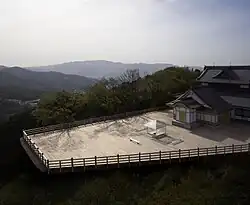 At the 54th Venezia Biennnale International Art Exhibition, Glasstress 2011, the collateral event of the 54th La Biennale di Vennezia, the glass tea house – KOU-AN was presented as an architectural project and in 2015, was built on the stage (observation deck) of Shogun-zuka, a mound of Shogun, Seiryu-den, which is a precinct of Tendai Sect Shoren-in Temple.[10] Ao (Blue) Fudo Myo-o statue, a national treasure, one of the three great Fudo, god of fire, is dedicated to Seiryu-den. From its 220 meters altitude big stage, you can enjoy a panoramic view over Kyoto city below. In the year 794, Emperor Kanmu visited this place and appreciating its basin formation (landscape) was convinced that Kyoto is the most suitable place to be designated a capital, initiating construction of the ancient capital city. So, it is said that this is the original point where ancient capital city of Kyoto, a city that symbolizes Japanese culture began.[11]
