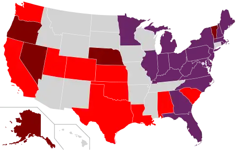 There are many toll roads in the United States; as of 2006, toll roads exist in 35 states, with the majority of states without any toll roads being in the West and South. In 2015, there were 5,000 miles (8,000 km) of toll roads in the country.[1]