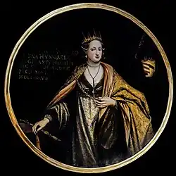 According to historian Tamás Kádár, Andrew III entrusted her mother to administer the southwestern parts of the realm sometime in 1293.[18] Dániel Bácsatyai considered that it occurred only in 1295.[19] She first appears in this dignity in November 1295, when confirmed the ownership right of Conrad Győr over Geresd against the claim of Benedict, Bishop of Belgrade. Attila Zsoldos considered that Tomasina was created duchess sometime between April and November 1295, but already in 1294 there was an attempt to do so.[17] Tomasina's full title was the "Duchess of the Whole of Slavonia and the Governor of the Provinces from the Danube to the Adriatic Coast" (Latin: ducissa totius Sclavonie et gubernatrix partium citra danubialium usque maritima); her duchess province covered the region "Slavonia" between the rivers Danube and Drava, through from Gvozd Mountain to the Adriatic Sea, while she administered the remaining attached territories with the title of governess.[18] Soon, her court was established consisted of her original entourage from Italy and local Hungarian lords. For instance, she donated a customs place with the consent of her "own barons" in 1295.[20]