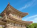 The complex also houses the rebuilt Chongrŭngsa Buddhist temple, where funeral services were held for the deceased monarch. The temple, whose foundations were excavated in 1974, was rebuilt to mark the 2,300th anniversary of Tongmyŏng's birth.[3]
