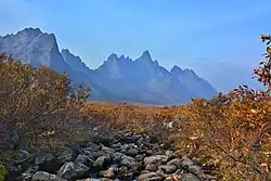Tombstone Territorial Park is a territorial park in the Yukon, one of three territories in Canada. It is in central Yukon, near the southern end of the Dempster Highway, stretching from the 50.5 to the 115.0 kilometre marker. The park protects over 2100 square kilometres of rugged peaks, permafrost landforms and wildlife, including sections of the Blackstone Uplands and the Ogilvie Mountains.[1] The Park is named for Tombstone Mountain's resemblance to a grave marker.
