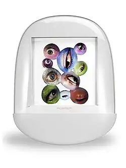 Signature works have been his talking lights, such as Streetlight (1997), his series of video sculptures of eyes with television screens reflected in the pupils, and ominous talking heads such as Composite Still Life (1999). An installation called Optics (1999) examines the polarity between dark and light in the history of the camera obscura. In his text "Time Stream", Oursler proposed that architecture and moving image installation have been forever linked by the camera obscura noting that cave dwellers observed the world as projections via peepholes. The essay both presents a timeline of mimetic technology and serves as an archive of some of Oursler's influences.[11] Oursler's interest in the ephemeral history of the virtual image led to large-scale public projects and permanent installations by 2000.[12]