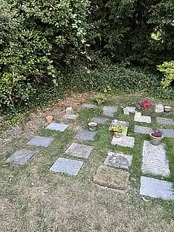 Ashes marker stone for Tony Streather among other marker stones, Hindon Church, Wiltshire.