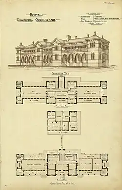 - ^ a b c d e f g h i j k l m n o p q r s t u v w x y z aa ab ac ad ae af ag ah ai "Toowoomba Hospital (entry 601296)". Queensland Heritage Register. Queensland Heritage Council. Retrieved 1 August 2014.