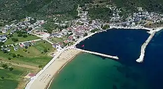Topağaç is a neighborhood located on the southern coast of the island, known for its expansive agricultural lands and often referred to as "the island's fruit and vegetable warehouse." The local population earns their livelihood through agriculture, fishing, and marble mining, and it is also one of the neighborhoods on the island with the highest number of summer residents. Additionally, due to having one of the longest and cleanest beaches in Marmara Sea, it is a popular destination for local tourists during the summer months.[1] The swamp that once covered a large part of the town and the mouth of the plain was largely filled with rocks and gravel in order to combat malaria and create a more suitable foundation for settlement. As a result of this filling process, the productivity of agricultural lands and wetlands was increased.[2]