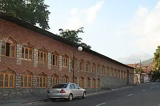 Topgaraghaj Mosque was built between 1899 and 1902 in the Topgaraghaj neighborhood of Shaki city. Its interior area is 24x12 meters, and the veranda area is 24x4.5 meters. The mosque was constructed using baked brick and river stone.[1]
