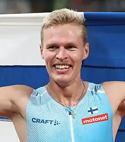 Topi Olli Vihtori Raitanen (born 7 February 1996 in Tampere) is a Finnish runner specialising in the 3000 metres steeplechase.[2] He is the current European Champion in the event.[3] He also reached the final at the 2018 European Championships finishing eighth. Raitanen also runs for Finland in Orienteering and has won a gold medal at the Junior World Orienteering Championships.