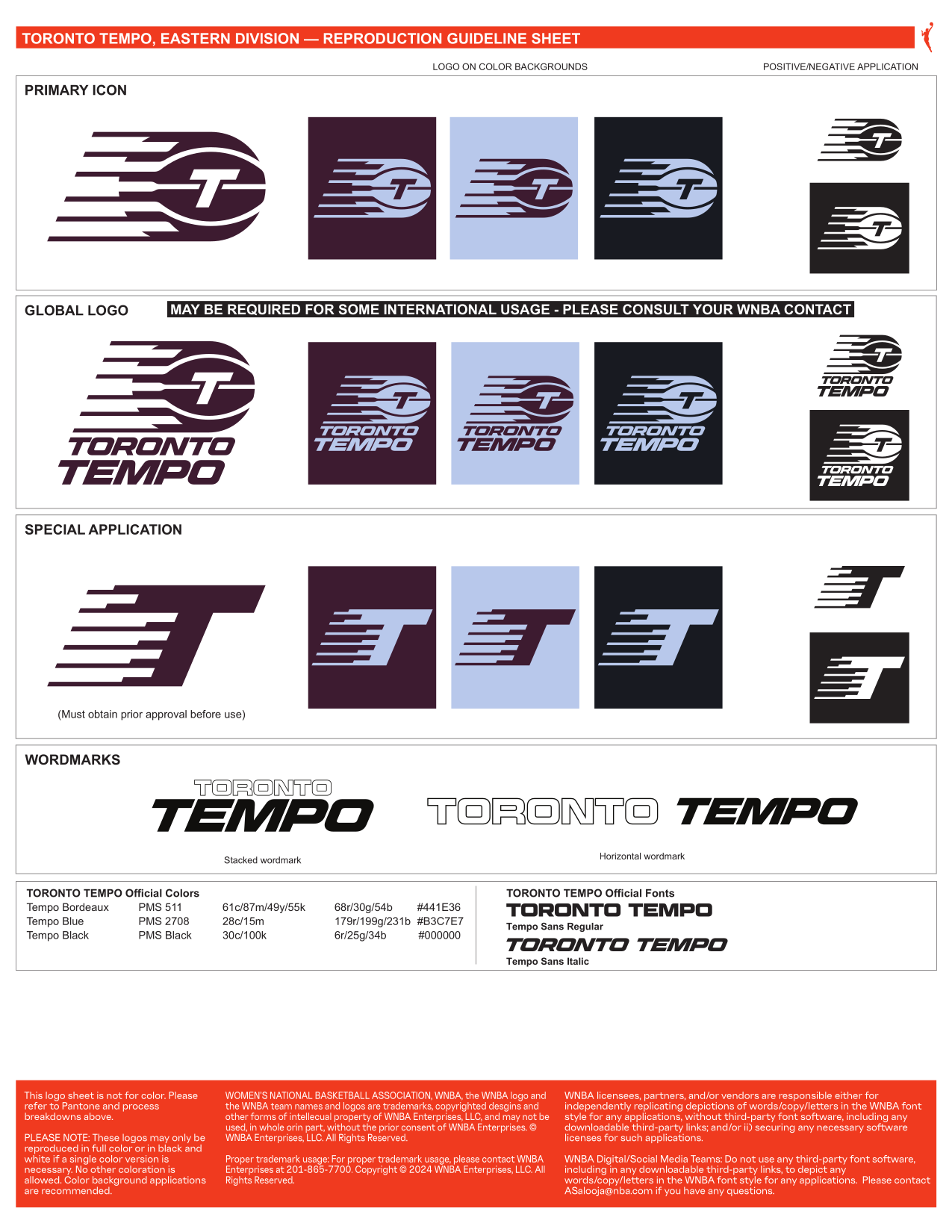 {{cite press release}}: CS1 maint: url-status (link) - ^ "Toronto Tempo Reproduction Guideline Sheet". WNBA Enterprises, LLC. Retrieved March 1, 2025.