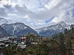 Tosh village is in Himachal Pradesh state of India. It is located at about 2,400 metres (7,900 ft) in elevation on a mountain slope on the right bank of the Parvati River in the Parvati Valley, surrounded by mountains (TOSH is the last village).[1][2] The main occupation of the people in Parvati valley is Tourism. Apple orchards are also a big source of income for the local people. Wooden houses in the village are excellent example of architecture of Mountain people. Tosh is less expensive than its neighbour town Kasol. The guest houses and the hotels are available both at the entrance and far end of the village.[3] Alongside the village is a right-bank tributary of the Parvati River. The Parvati River begins at the Mantalai Glacier within the Parvati Valley. The peaks surrounding the glacier include Papasura, White Sail, Angduri, Pinnacle, and Devachan.[4] Tosh village is reached by bus from Kullu to Barshaini via Kasol and Manikaran and then a one-hour hike.[2][5][6] It is described as a "traditional village turned hippie colony".[6]