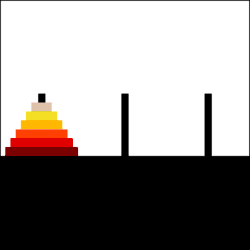 A simple solution for the toy puzzle is to alternate moves between the smallest piece and a non-smallest piece. When moving the smallest piece, always move it to the next position in the same direction (to the right if the starting number of pieces is even, to the left if the starting number of pieces is odd). If there is no tower position in the chosen direction, move the piece to the opposite end, but then continue to move in the correct direction. For example, if you started with three pieces, you would move the smallest piece to the opposite end, then continue in the left direction after that. When the turn is to move the non-smallest piece, there is only one legal move. Doing this will complete the puzzle in the fewest moves.[13]