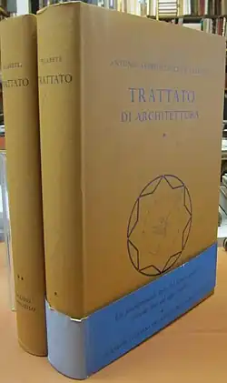 - ^ Spencer, John (1975). "Review Reviewed Work ( s ): Antonio Averlino detto il Filarete. Tratato di Architettura by Anna Maria Finoli and Liliana Grassi". The Art Bulletin. 57 (1): 131.