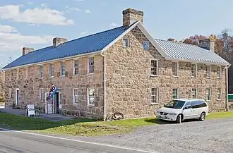 Travelers Rest, also known as Old Stone House, is a historic home located near Burlington, Mineral County, West Virginia. It was built as a stagecoach stop to service the Northwestern Turnpike. It serviced the corridor between Winchester, Virginia and Parkersburg, Virginia (now West Virginia). The house is believed to have been built in two phases, in 1827 or as early as 1810, and is a stone, Ell-shaped building executed in a vernacular adaptation of the Greek Revival style.[2]