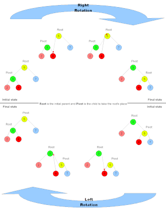 Consider the terminology of Root for the parent node of the subtrees to rotate, Pivot for the node which will become the new parent node, RS for the side of rotation and OS for the opposite side of rotation. For the root Q in the diagram above, RS is C and OS is P. Using these terms, the pseudo code for the rotation is:
